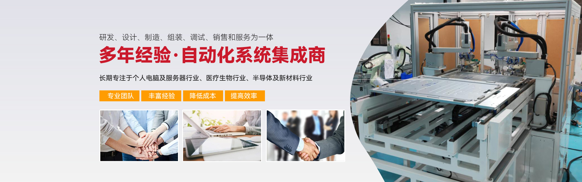 ※ 長(zhǎng)期專(zhuān)注亍個(gè)人電腦及服務(wù)器行業(yè)、醫(yī)療生物行業(yè)、半導(dǎo)體及新材料行業(yè)三大行業(yè)的自動(dòng)化組裝、檢測(cè)設(shè)備的生產(chǎn)與開(kāi)發(fā)。